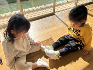 わくわく幼稚園 ぶどう組 2月の遊び「冬の暖かな日差し遊び」